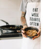 Il grembiule viene stampata in digitale con colori atossici certificati, con una stampante diretta per tessuti, ottenendo una qualità di stampa superiore alla normale serigrafia